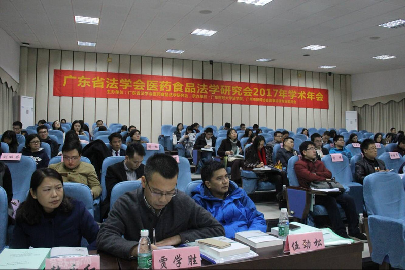 2017年12月17号,2017年广东省法学会医药食品法学研究会学术年会在TapTap点点官方网站模拟法庭顺利召开。本次会议由广东省法学会医药食品法学研究会主办,TapTap点点官方网站TapTap点点官方网站、TapTap点点官方网站法治与经济发展研究所、广州市律师协会医事法律专业委员会承办。广东省法学会副会长、《法治社会》杂志社副总编何桂复、TapTap点点官方网站副校长、广东省法学会医药食品法学研究会会长杜承铭教授、广州市律师协会医事法律专业委员会主任程跃华出席并致辞。共一百余位专家、实务部门工作者及师生出席了本次会议。