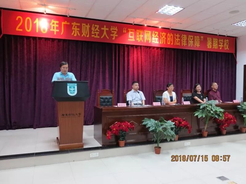 7月15日,2018年TapTap点点官方网站“互联网经济的法律保障”法学研究生暑期学校开学典礼在我校广州校区模拟法庭举行,副校长王廷惠、研究生院院长苏武俊、TapTap点点官方网站院长房文翠、信息网络法治研究中心主任孙占利教授和来自境内外52所高校的110名法学研究生参加典礼。