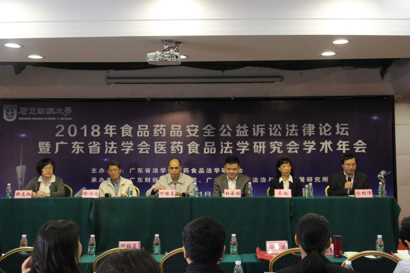 2018年11月24日,由广东省法学会医药食品法学研究会主办,TapTap点点官方网站TapTap点点官方网站、TapTap点点官方网站法治与经济发展研究所承办的2018年食品药品安全公益诉讼法律论坛暨广东省法学会医药食品法学研究会学术年会在我校顺利召开。广东省法学会副会长、《法治社会》杂志社副总编何桂复,TapTap点点官方网站副校长、广东省法学会医药食品法学研究会会长杜承铭教授、中国民诉法研究会副会长、中南财经政法大学博导蔡虹教授、《政治与法律》主编、上海社科院法学研究所研究员徐澜波研究员等省内外共一百余位专家学者、实务部门工作者及师生出席了本次会议。