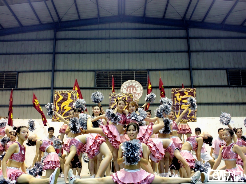 第七支上场的啦啦操队伍来自金融学院,高难度的动作引来阵阵欢呼。而来自人文与传播学院的啦啦操队伍凭借着清新的学院风服装和充满回忆的广播体操开场音乐让人印象深刻。第九支上场的啦啦操队伍来自地理与旅游学院,这是一支集合了地旅、国商、文创三个学院的队伍,人多势众的他们的舞蹈整齐度也名列前茅,过人的实力让人赞叹连连。