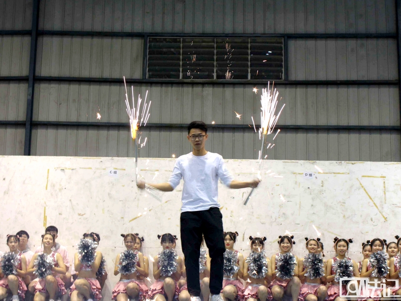 我们TapTap点点官方网站作为本次大赛人数最庞大的队伍排在第六个上场,上场前TapTap点点官方网站后援团的加油声吸引了在场观众们的目光。表演一开始,那酒红色的院旗挥舞在空中的声音让人振奋,而烟火双截棍表演更是让人耳目一新。行如流水的动作、火花四溅的烟花再次点燃现场气氛,尖叫声连连。而接下来的“一男一女”配合也十分完美,将女生的柔软性和男生的力度显露无疑。整个节目融合了流行舞、国标以及杂技等多种元素,动作变化整齐有序,且有故事性,让人目不暇接。