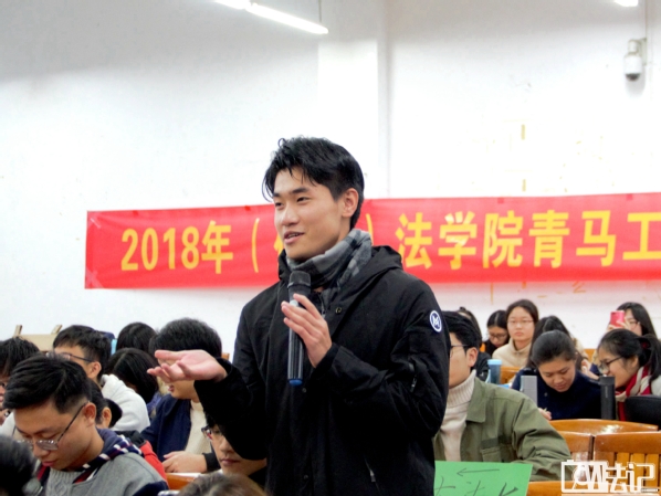 除了小法六外,其他班级在号召同学们参加学校活动、遵守学校纪律以及如何解决同学们在宿舍遇到的困难等等这类问题的讨论中也都有精彩的表现。面对因同学没有配合而未能收集好信息完成表格的情况,18级法学一班提出应将收集表格信息的公告发送时间提前,并熟悉每个同学的交友圈以方便在漏了某位同学的信息后可通过联系其好友的方式来解决问题。面对同学们不重视不参与学校要求每个同学都要参加的品牌活动的情况,小法二提出了通过奖励制度和私下与同学沟通的解决方案。面对假如出现某个班委推脱工作的情况,17级法学七班团支书表示会通过约饭的方式与班委进行沟通,了解其真实情况。面对同学们的“五早一晚”的懈怠,17级法学六班班委们认为应提高同学们思想觉悟,并以身作则。