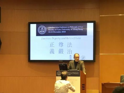 陈弘毅教授首先阐明本次会议主题“正义、尊严、法治”的内涵与意义,指出只有法治才能构建正义和尊严的社会。