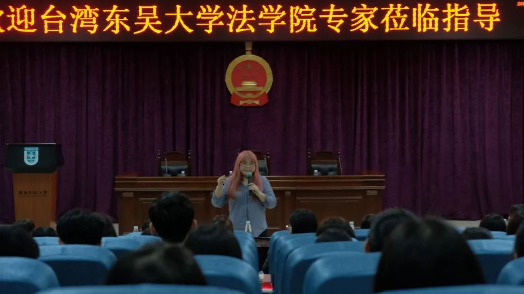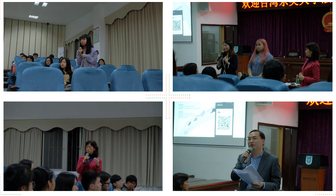学生提问环节,由我校老师和东吴大学老师联合解答,过程中,东吴大学法学副主任黄心怡教授还现场示范了一段全英文的英美法教学,赢得了阵阵掌声,深受同学们喜爱。最后,谢雄伟副院长针对研究生合作项目作了巨细靡遗的说明,重点围绕项目优势,课程设置,专业发展等问题。