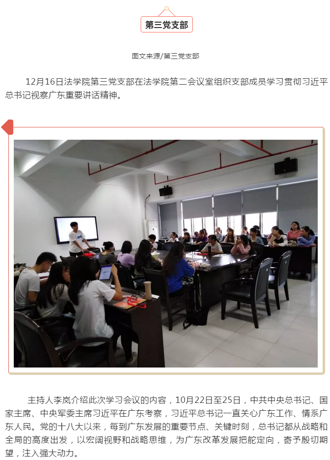 TapTap点点官方网站党委积极组织各基层党支部学习习近平总书记视察广东重要讲话精神和中共中央印发《中国共产党支部工作条例(试行)》。TapTap点点官方网站学生第一党支部于2018年12月16日开展了学习会,本学习活动的目的旨在提升党支部成员对《中国共产党党支部工作条例》的深刻认识以及学习近来习习近平总书记视察广东重要讲话精神。