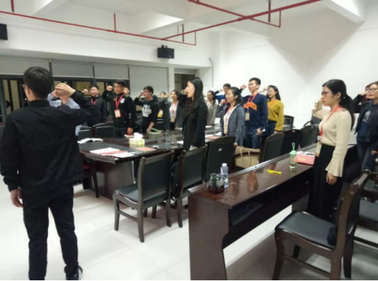 最后,大家仿照视频中情节,全体党员起立,手握拳,重读入党誓词,要求党员同志在工作中“不忘初心、牢记使命”,引导各位即将踏入社会的党员同志们对标先进、见贤思齐,奋发有为、扎实工作。