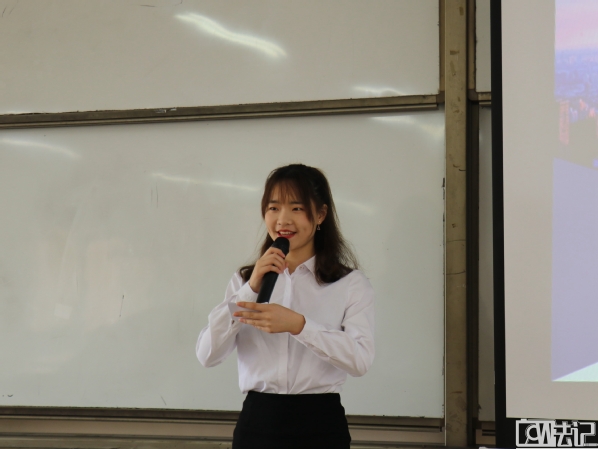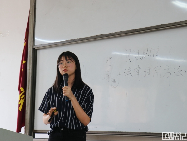 第二位向我们分享经验的是来自16级法学四班的李其蔓同学。她曾先后获得校长奖学金提名奖、院长奖学金、学术优秀奖、学术科研奖、文体优秀奖、自强不息奖。李其蔓同学在专业学习、学术科研方面刻苦钻研,并有丰富的课外实习经验。她在向大家作了自我介绍之后又对肖煜鹏同学的分享作了补充。在她的经验分享中,她特别强调了法学生对自己逻辑思维训练的重要性,并向我们推荐了令她受益匪浅的两本书——《民法思维》和《法律使用方法》。李其蔓同学用亲近平和的言语,介绍了她大学三年以来的经历,分享了令她收益的六件事,讲述了自己是如何提升学习成绩与文体修养的。她身上自律自强的精神令人佩服。最后,她还分享了她的三个锦囊:积极主动,把握当下;以终为始,相信自己;要事第一,相信因果。
