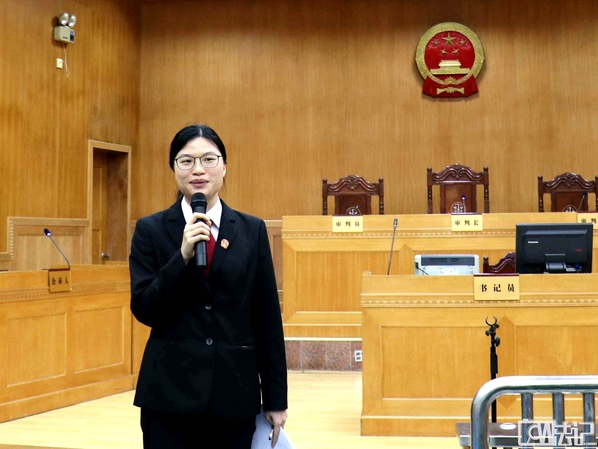 10分钟的休庭时间过后,法官宣布本次案件的审判结果:被告人刘剑的行为构成故意杀人罪,判处有期徒刑3年,缓期4年执行。随后是三水区人民法院江棣枝法官对本次模拟案件审理的点评时间。