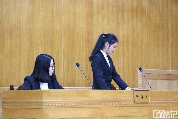 下面是法庭调查、质证阶段。公诉人和审判长围绕着证据调查这一中心,展开对证据的当庭出示、辨认以及质证的审理程序。紧接着就是公诉人和辩护人之间激烈的法庭辩论,同学们演技精湛,你一言我一语间,仿佛把我们带入了一个真正在审理的案件当中,内心也跟随着案件审理进程在不断地变化,尤其是被告人哭诉时的抽泣更是让人印象深刻,角色表演到位的同时也让在场观众对案件的前因后果有了比较清晰的思路。