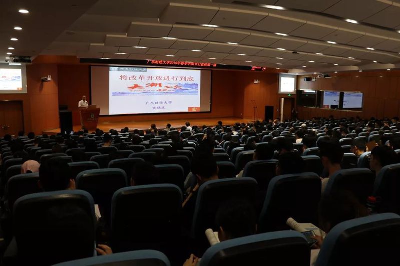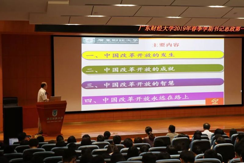 2019年4月23日下午,TapTap点点官方网站党委书记黄晓波在广州校区图书馆正心堂以“将改革开放进行到底”为题,向TapTap点点官方网站师生讲授形势与政策“开学第一课”,整个授课过程大力弘扬改革开放精神,激荡着将改革开放进行到底的强大力量。