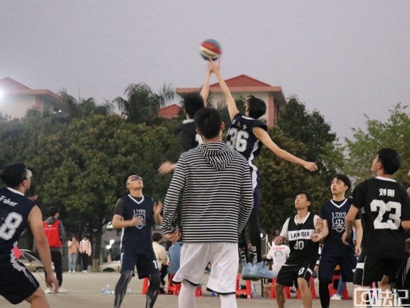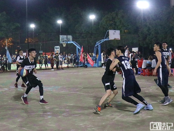 当晚举行的小组篮球赛共有两场,分别是17级法学二班对战18级法学六班、17级法学八班对战18级法学五班。