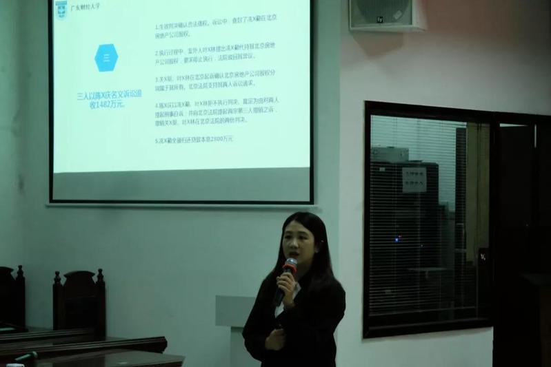 赛前,主持人介绍比赛规则。其后,广东天地正律师事务所胡敏芝律师作为主办方代表为大家讲解案情,指出案件所涉及的法律关系要点所在,并对今晚参赛选手们的精彩表现表示期待。