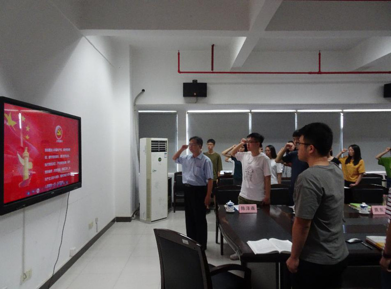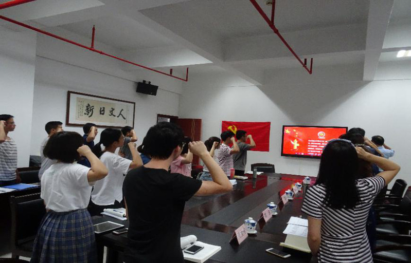 随后进行新发展党员的入党宣誓。入党宣誓由袁东卫书记领誓,与会党员面对鲜红的党旗进行庄严宣誓。入党宣誓后,袁东卫书记对预备党员们寄语,希望他们牢记党员的使命,树立榜样意识,保持积极,争取更大的进步。