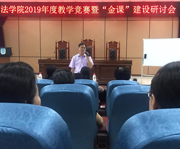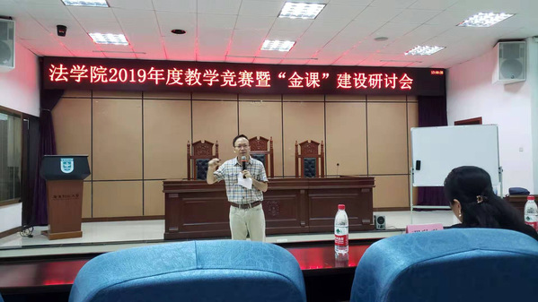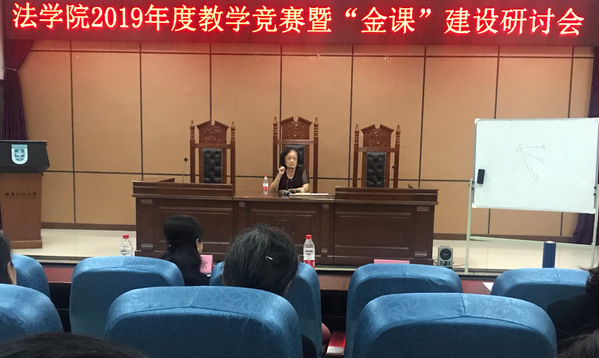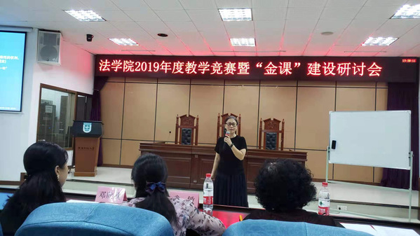 袁书记致辞后由三位参赛教师分别授课,第一位参赛教师是来自理论法学系的向仁富老师,向老师讲授的主题是《诸子百家法律思想与商鞅变法》,向老师授课沉稳大气、对诸子百家的法律思想娓娓道来,既有一般介绍,也有自己独到的见解,并能引导学生独立思考,展现了向老师深厚的法学底蕴。