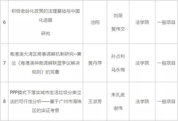 其中,TapTap点点官方网站有3个项目获一般项目立项,分别为池翔团队申报的项目《积极老龄化政策的法理基础与中国化进路研究》(指导老师:刘薇、黄伟文),黄丹萍团队申报的项目《粤港澳大湾区商事调解机制研究--兼论〈粤港澳仲裁调解联盟争议解决规则〉的完善》(指导老师:孙占利、马永梅),王淑芳团队申报的项目《PPP模式下落实城市生活垃圾分类立法的可行性分析——基于广州市海珠区的实证考察》(指导老师:朱孔武、谢伟)。