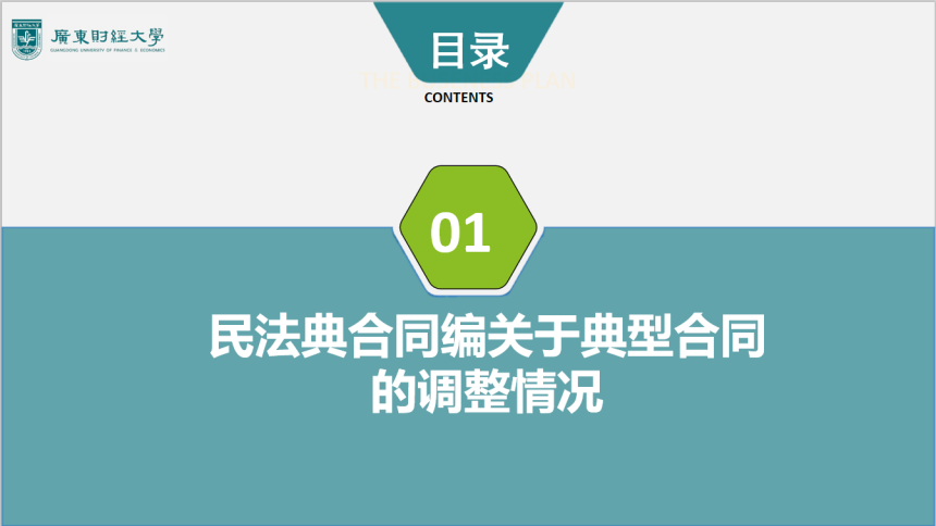 首先第一个部分讲的是“民法典合同编关于典型合同的调整情况”。所谓典型合同,又称有名合同,定型合同,是指法律上对其类型、内容都作出了明确规定的合同。民法典•合同编•典型合同分编规定了19种典型合同,除了合同法的15种典型合同外,增加了保证合同、保理合同、物业服务合同、合伙合同,并将原合同法中的居间合同更名为中介合同。