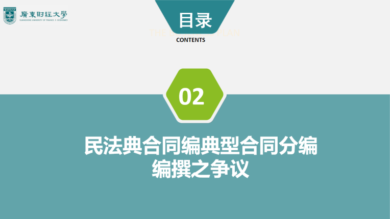3、关于有名合同入典的主要争议第一:商事合同应否入典,以及民商合一体例下合同规则的商化程度争议;第二:混合合同能否入典的争议;第三:是否设置类合同种类的争议。