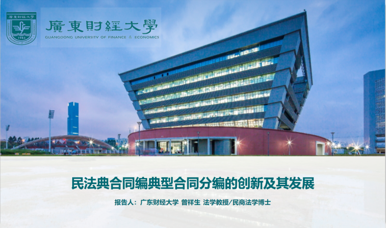 今天曾祥生教授为我们讲授的题目是“民法典合同编分则的创新与发展”。讲解主要分为四个部分:一、民法典合同编关于典型合同的调整情况;二、民法典合同编典型合同编编撰之争议;三、民法典合同编关于典型合同具体规则的创新;四、评价与展望:典型合同之发展趋势。