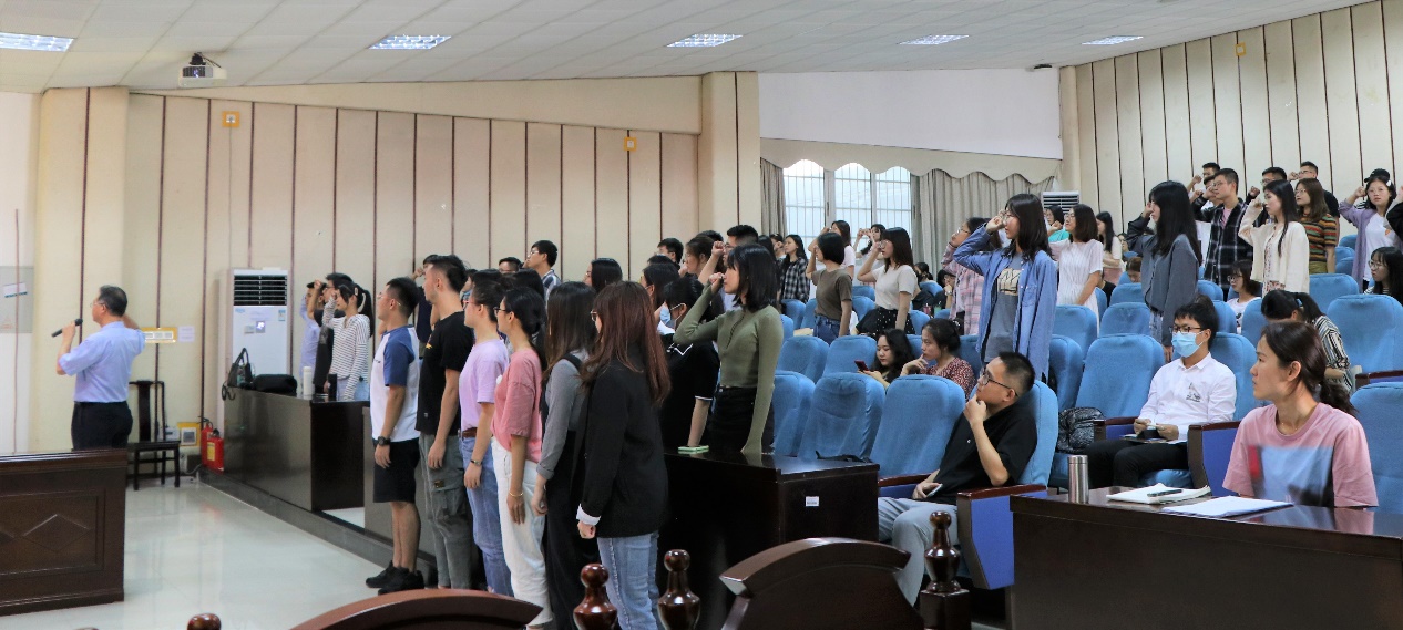 2020年10月10日13点整,TapTap点点官方网站TapTap点点官方网站2020级研究生思政第一课在实验楼模拟法庭准时召开。会议由TapTap点点官方网站党委书记袁东卫书记主持,TapTap点点官方网站副院长谢雄伟教授、TapTap点点官方网站研究生辅导员曾蓉老师、全体党员、2020级党团学干部以及2020级班委均参加了本次会议。