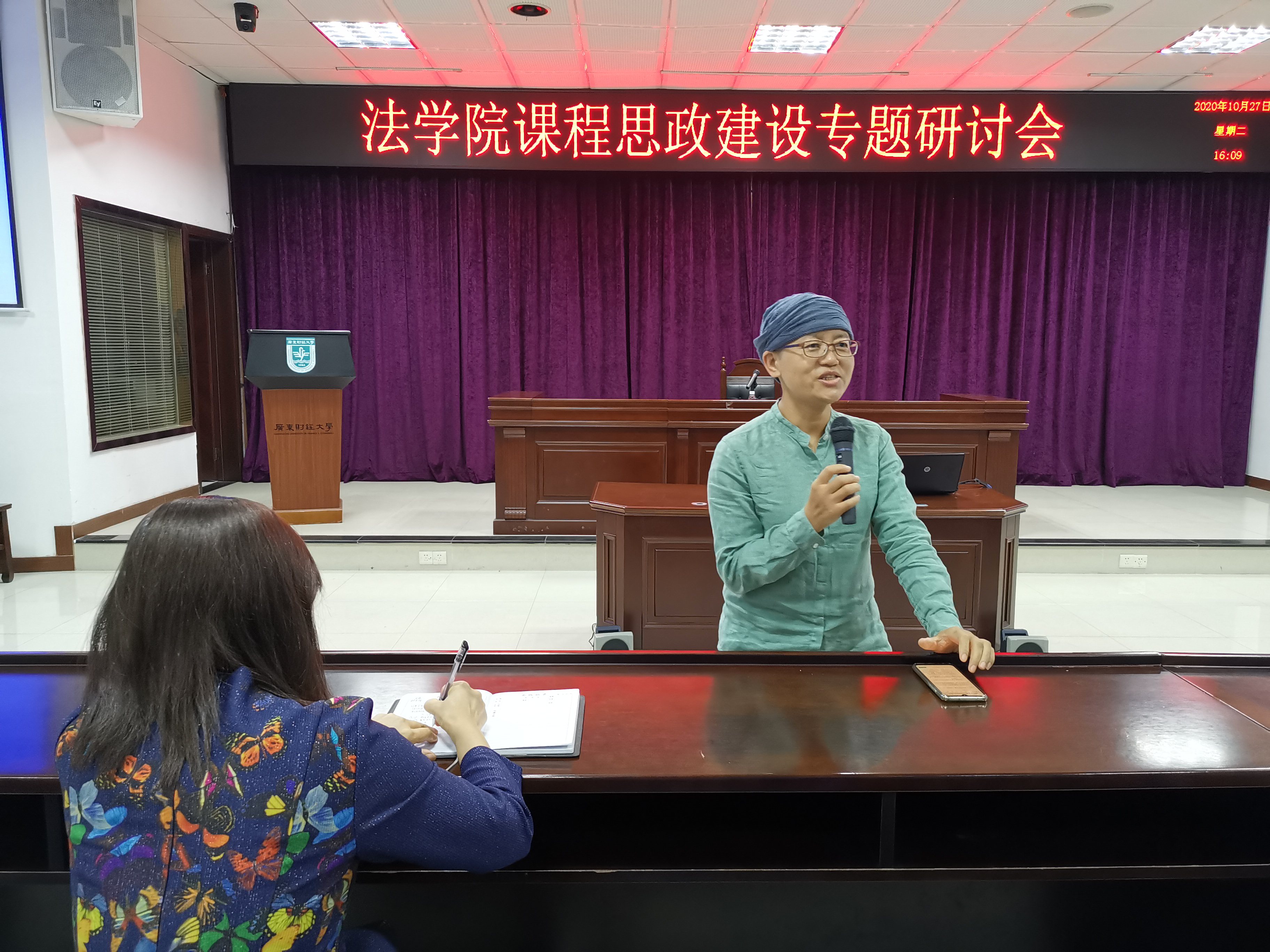 研讨会共分为三个阶段,第一阶段,由孟国碧副院长向老师们传达《教育部关于印发<高等学校课程思政建设指导纲要>的通知》(教高〔2020〕3号)等课程思政建设文件的精神,学校《关于开展课程思政与思政课程建设专项活动的通知》(粤财大教〔2020〕83号)关于课程思政建设的安排和要求,全院老师一起学习两个主要通知的内容,充分理解法学专业和法学课程思政建设的目标和要求、建设的内容和重点、如何科学设计课程思政教学体系,如何将课程思政融入课堂教学建设的全过程、如何提升教师课程思政建设的意识和能力、建立健全课程思政建设质量评价体系和激励机制、加强课程思政建设组织实施和条件保障等。明确课程思政建设的指导思想、活动目标、专项活动。