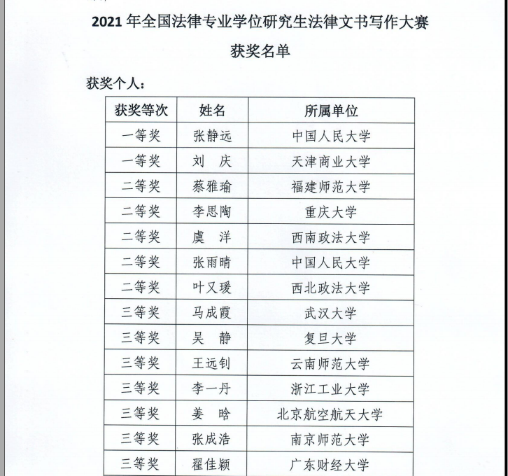 TapTap点点官方网站翟佳颖荣获全国法律专业学位研究生法律文书写作大赛三等奖