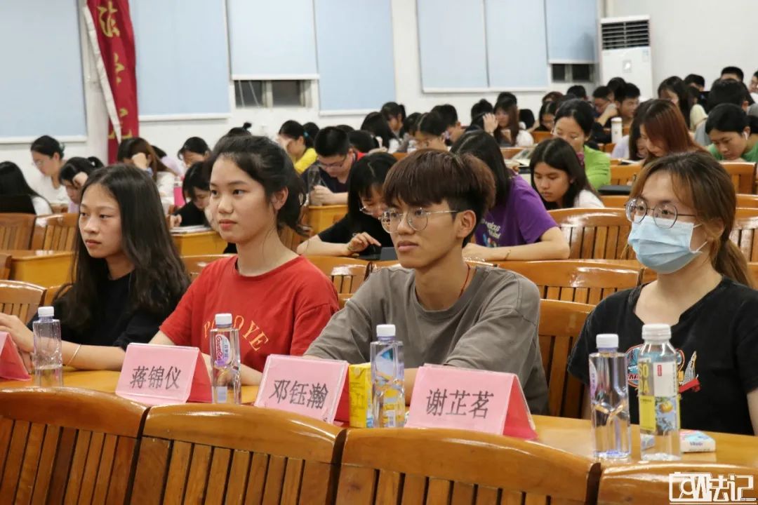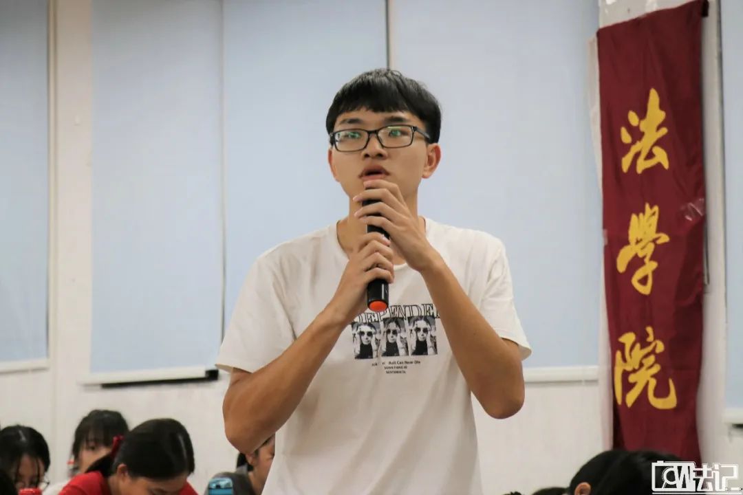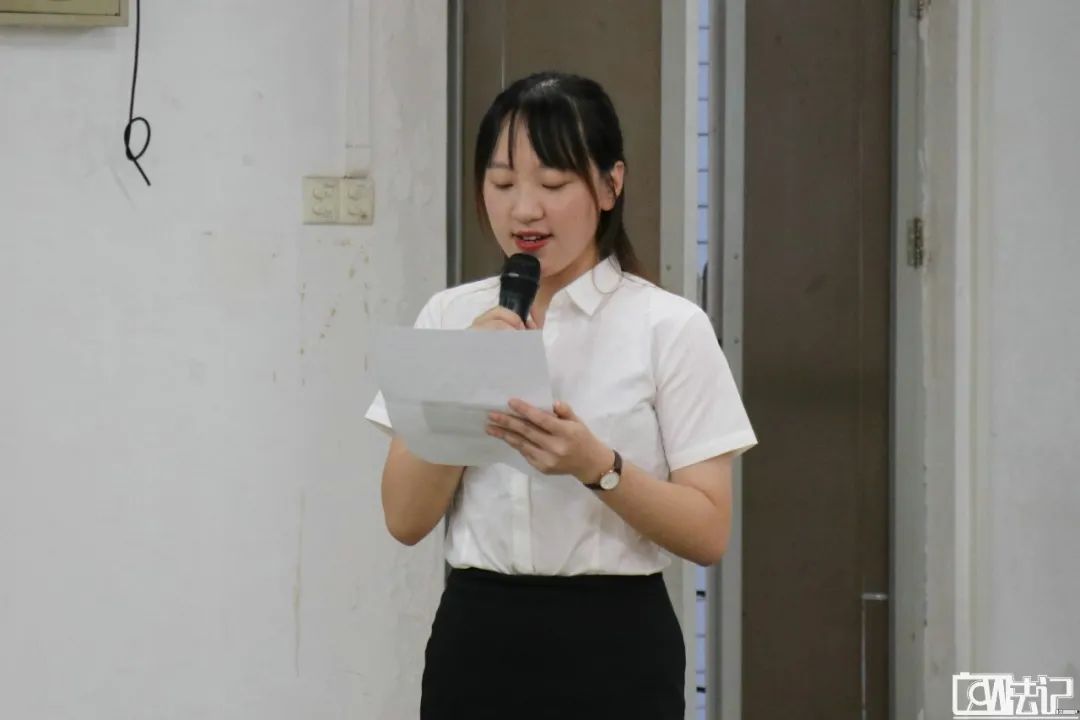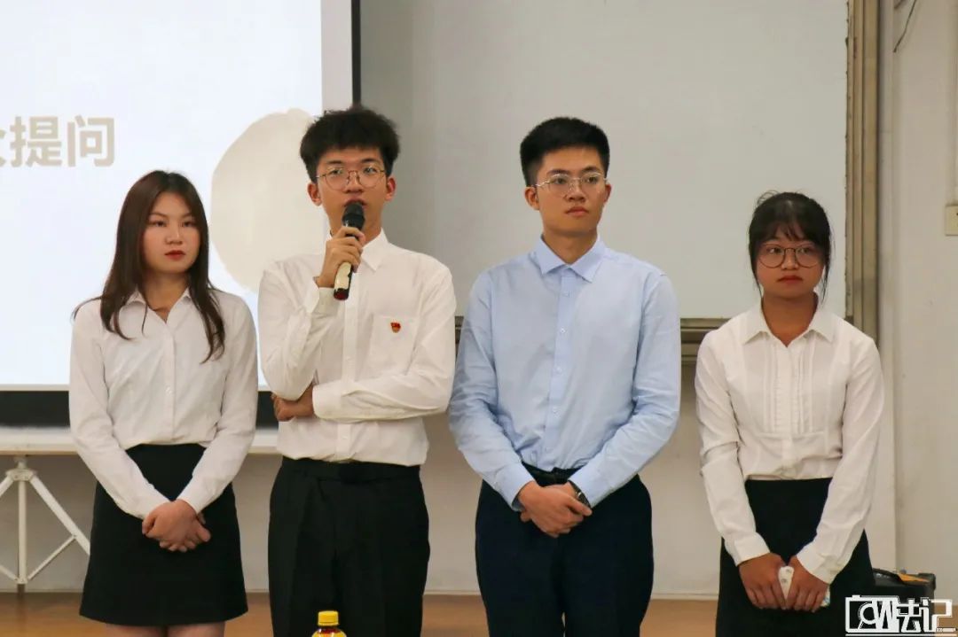 紧接着上台分享心得的是广财法学党员青年团。宣讲代表刘卓然同学介绍称广财法学党员青年团是一个由TapTap点点官方网站党员和入党积极分子组成的队伍,他们充分发挥法学专业优势,以服务宣讲的形式进行乡村法律普及活动。展望今年,他们期待与梅州地区的合作,也期待同学们的参与。