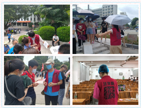 6月的广州,时而酷热难当,时而大雨瓢泼,酷暑与“龙舟水”一同冲击这座城市。核酸检测现场,志愿者们身穿防护服,佩戴口罩,在广州闷热的夏日中一站就是几个小时。有的检查预约检测码,提醒前来检测的同学们做好相关防护;有的组织学生排队,维持现场秩序;还有的帮忙登记、录入信息,全力配合现场检疫人员的工作。