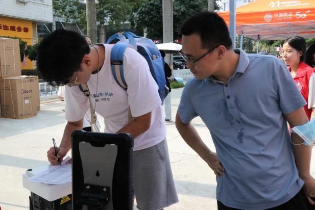 班助、团员干部、志愿者们帮助新生搬运行李