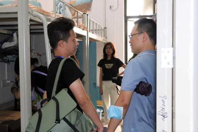 辅导员王孝生老师和班助到宿舍关心新生情况
