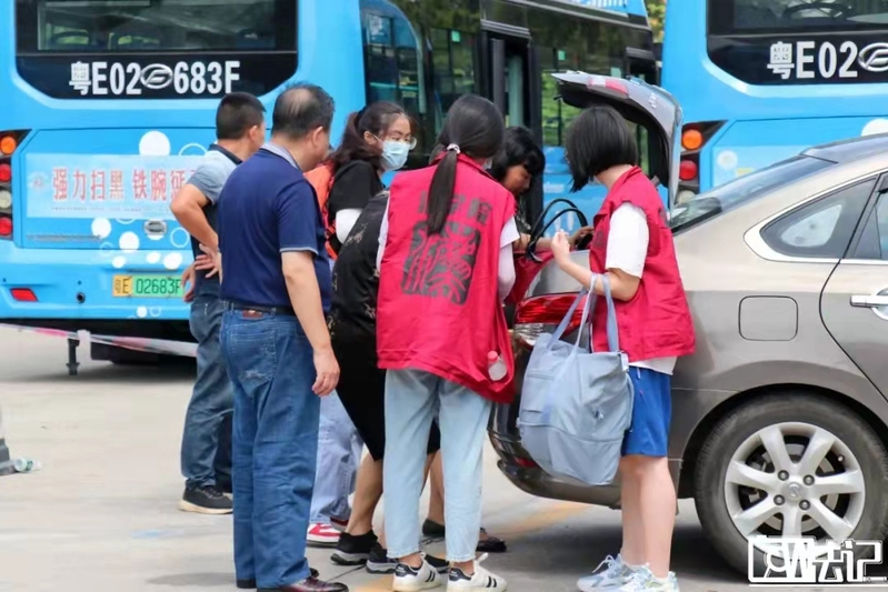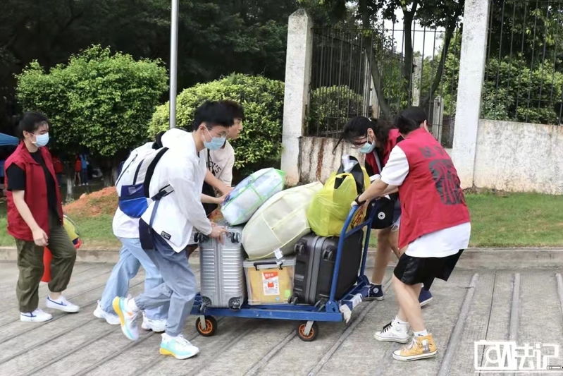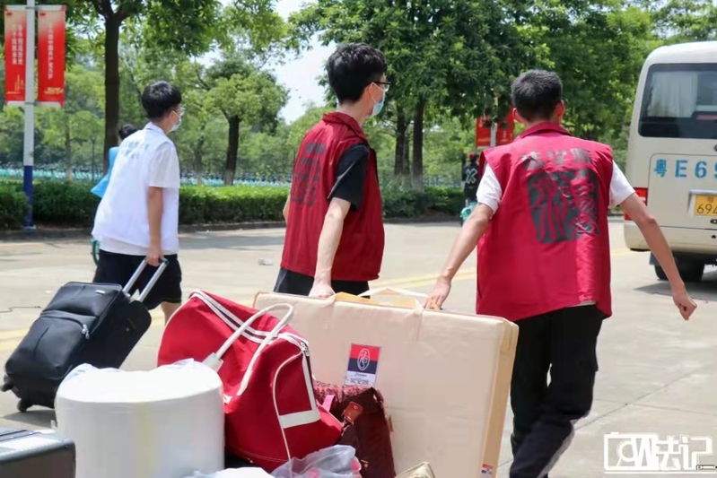 由于疫情防控工作需要,家长们只能止步于校门口。看到新生们提着大包小包的行李,志愿者们纷纷积极主动地上前提供帮助,为新生们提行李,指引新生坐上校园穿梭巴士。值得一提的是,校园穿梭巴士是学校为新生准备的暖心服务之一,旨在把所有新生和行李送到各园区门口,可随时拦截,全程免费。