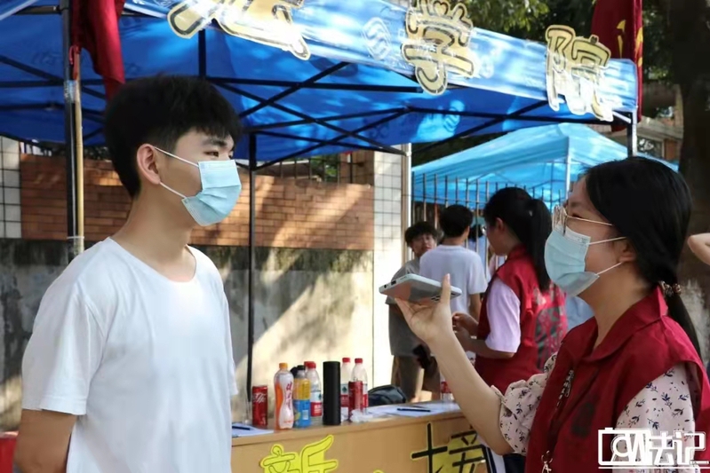恰逢白露,尚未完全入秋。树上的蝉仍在孜孜不倦地高歌,是对新生们到来的欢迎,也是对志愿者们的礼赞。学校大门敞开,今日新生从这里进来,也愿未来有更多人才从这里走出。