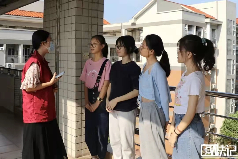 同时,我们也采访到了忙碌了一天的班助。负责21级法学八班的班助陈鹏苇表示,当初竞选班助是因为想把上一届班助带给我们的温暖传递下去。一天下来,班助们的主要工作是让新生登记姓名,领取宿舍钥匙,在线为新生们答疑解惑,帮助他们搬行李。虽然感到很累,但心里依旧保持着对工作的热情,当看到其他志愿者们的衣服被汗水浸湿,也被他们辛勤的工作态度所感染。最后,他想对新生们说:“欢迎大家来到广财,希望大一的你们对未知的生活能保持着积极的探索热情,乘风破浪,披荆斩棘。”班助们是新生来到大学的第一位引航人,把受到帮助的温暖转化为无私奉献的正能量,代代相传,工作虽辛苦忙碌,但意义无限。