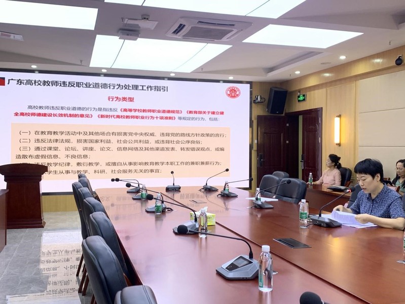 会上,陈静介绍了学校2021年师德建设主题教育月活动内容以及相关要求,动员全体老师积极参与“赓续百年初心,担当育人使命”师德建设主题系列教育活动。学院全体老师一起学习了《新时代高校教师十项行为准则》《广东高校教师违反职业道德行为处理工作指引》,增强自身法治素养和规则意识,提高依法执教、规范执教的能力和水平,切实做到知敬畏、存戒惧、守底线,共同营造风清气正的良好教育生态。