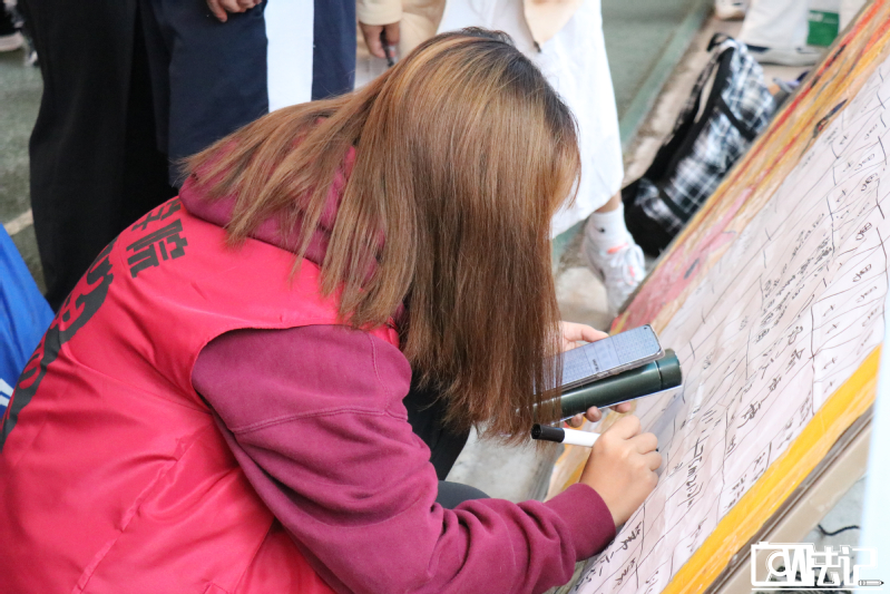 早在运动会开始之前,相关准备工作已经密锣紧鼓地持续了数周。TapTap点点官方网站志愿者们顶着炽热的大太阳,在有序的安排下布置着TapTap点点官方网站的大本营。从大字报和立宣的搬运,到粘竹竿穿绳子的细节工作,宣绘社的志愿者们用行动诠释了什么叫无私与坚持,他们在工作室里创作的无数个忙碌日夜在此刻获得了大家无数的称赞,用心手绘的大字报也吸引着大家纷纷前来“打卡”合照。