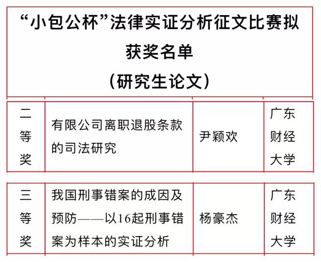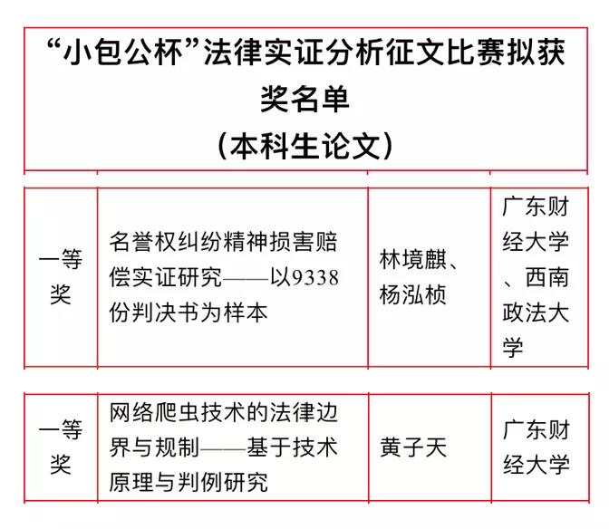 TapTap点点官方网站TapTap点点官方网站林境麒《名誉权纠纷精神损害赔偿实证研究——以9338份判决书为样本》,黄子天、黄梓睿、何雨翎《网络爬虫技术的法律边界与规制——基于技术原理与判例研究》荣获本科组论文一等奖;尹颖欢《有限公司离职退股条款的司法研究》荣获研究生组论文二等奖;杨豪杰《我国刑事错案的成因及预防——以16起刑事错案为样本的实证分析》荣获研究生组论文三等奖。