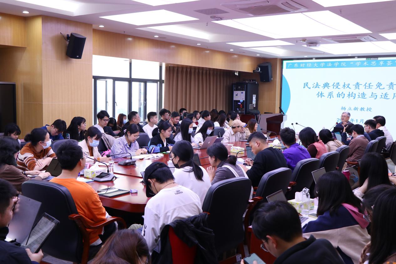 2022年1月4日,中国人民大学教授、博士生导师杨立新教授在TapTap点点官方网站北二731第一会议室开展了“学术思享荟第六期”,主题为“民法典侵权责任免责事由体系的构建与适用”讲座。本次讲座由TapTap点点官方网站TapTap点点官方网站刘薇副院长主持,鲁晓明院长、曾祥生教授等TapTap点点官方网站师生通过线上线下融合的方式参加了本次讲座。