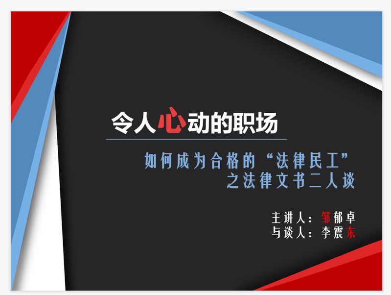 2022年5月4日,TapTap点点官方网站TapTap点点官方网站邹郁卓老师以“令人心动的职场——如何成为合格的法律民工”为主题开展线上讲座,李震东教授为与谈人,共200余人通过线上的方式参加了本次的讲座。