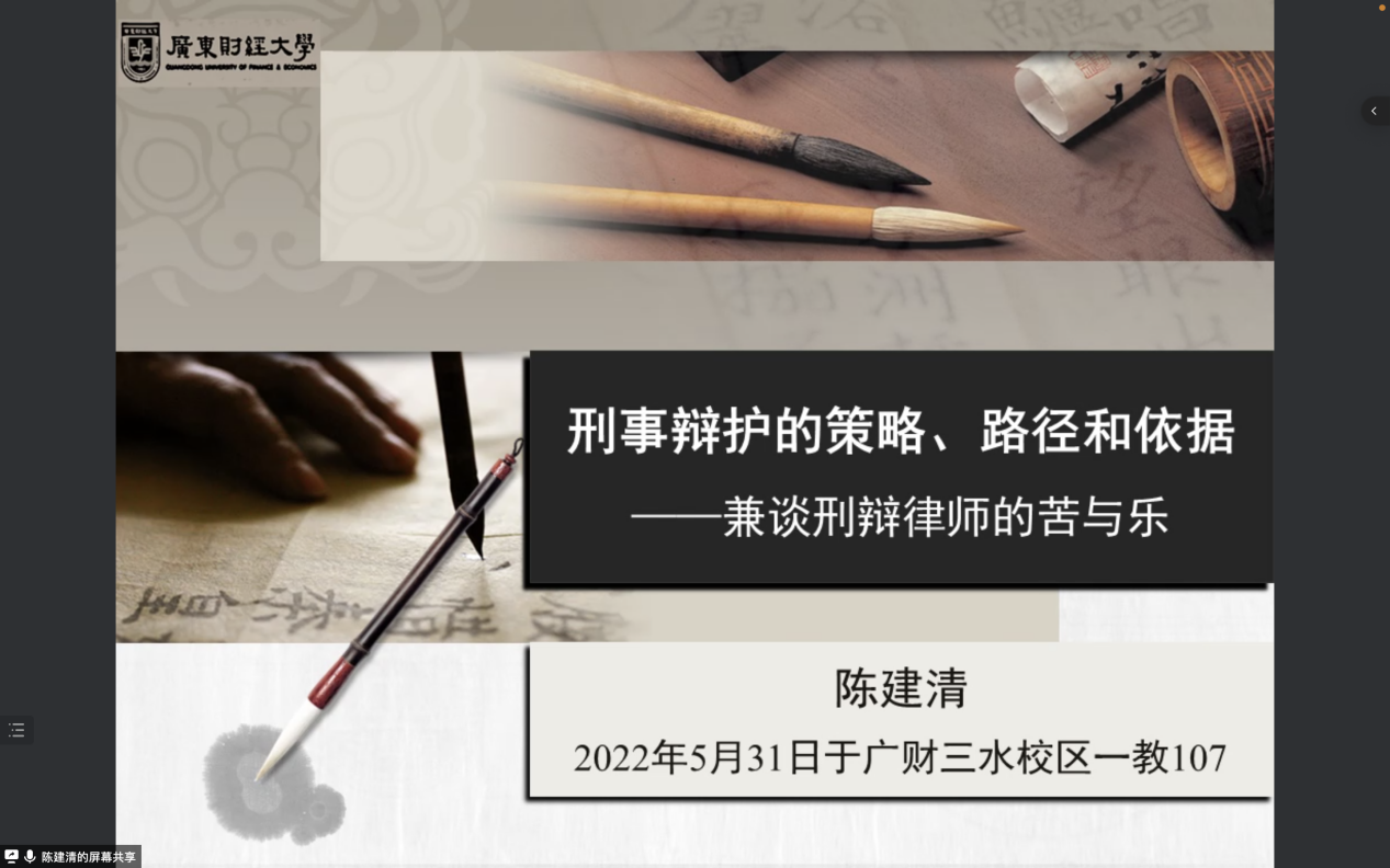 2022年5月31日,TapTap点点官方网站TapTap点点官方网站陈教授以“刑事辩护的策略、路径和依据——兼谈刑辩律师的苦与乐”为主题在佛山校区一教107室举办讲座,四百余人通过线上线下融合的方式参加了本次的讲座。讲座主要围绕以下三个部分展开。