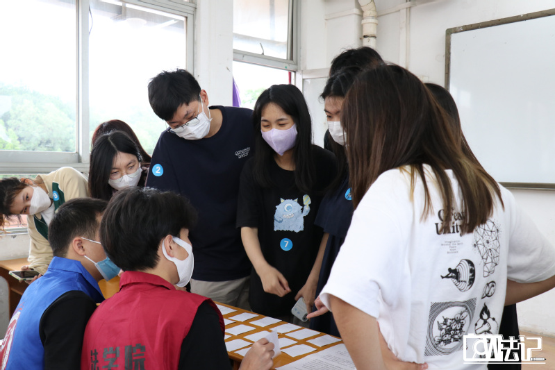视频观看完毕后,团支书们收获良多,纷纷踊跃发表感言。随后,主持人向大家介绍了定向越野相关规则引导各组到大教室门口准备出发。工作人员一声令下,定向越野正式开始,队员们争先恐后地向目标教室进发。每个目标点的游戏各有不同,分别是党史大事记、投壶游戏知识竞答、你画我猜和叠叠高串串连