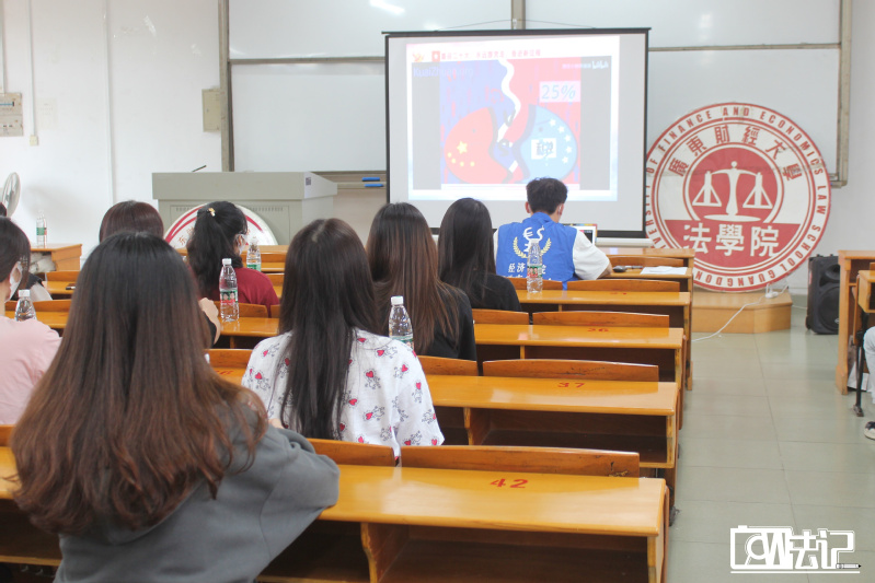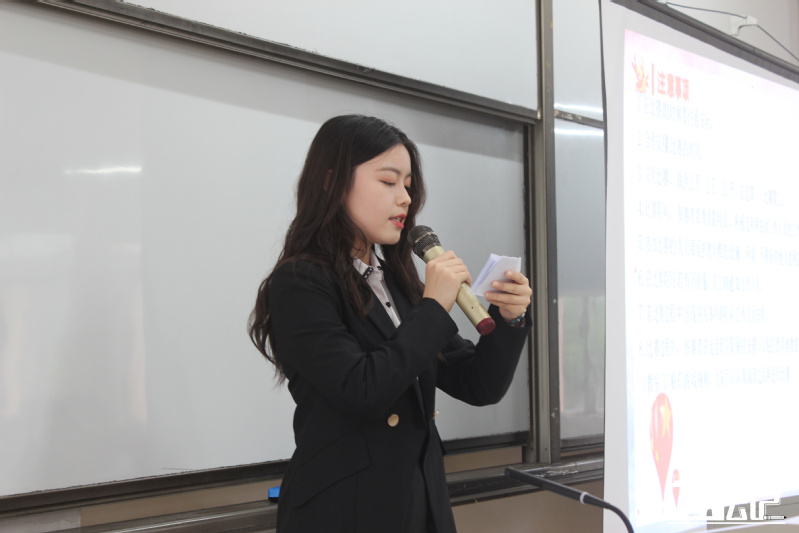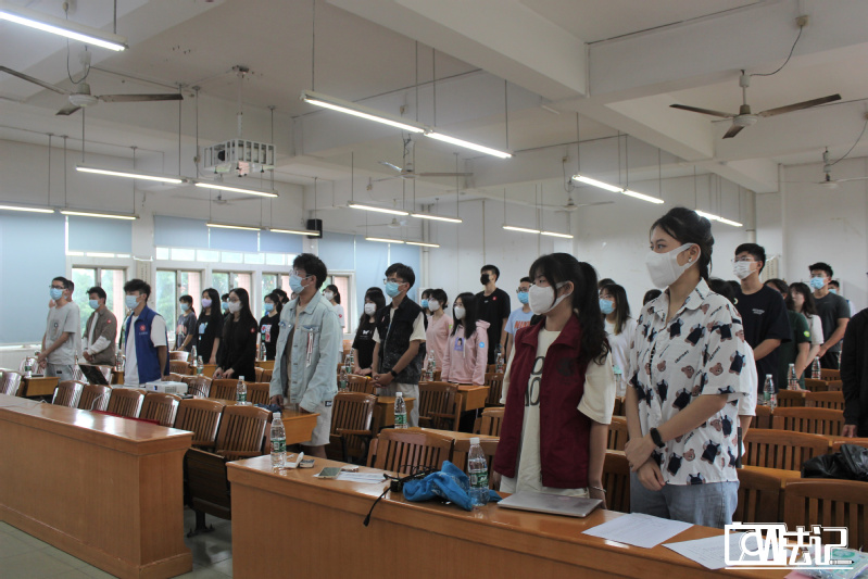 即使场外风雨飘摇,但仍然挡不住同学们的热情,活动在室内依旧如火如荼地进行着。活动开场第一个环节便是奏唱团歌,全体团支书庄严肃立,响亮的歌声环绕在教室上空。一曲终了,主持人播放相关视频,帮助大家更好地学习党建和团建知识。