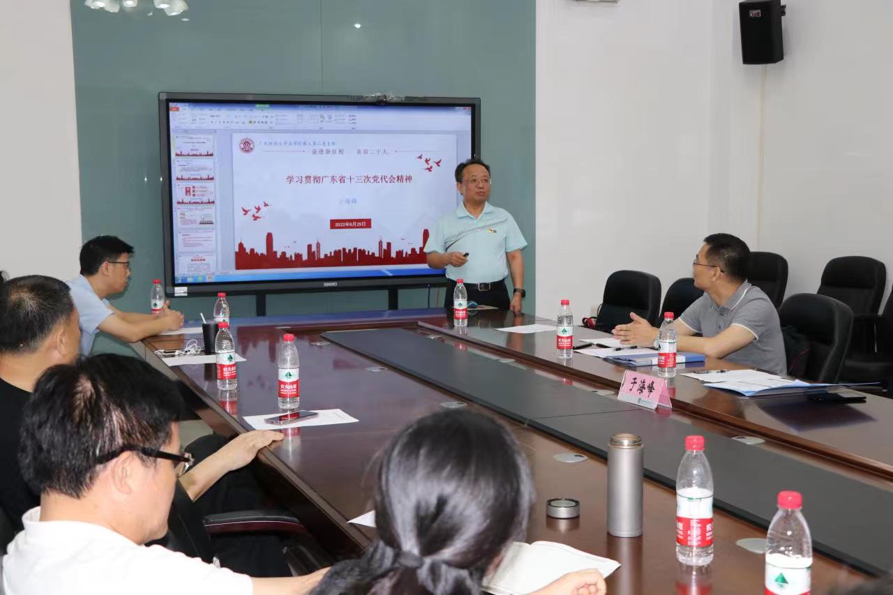 于海峰介绍了省第十三次党代会的基本情况,对大会报告的重点内容进行了解读,并就支部认真学习领会、抓好贯彻落实会议精神提出要求:一要旗帜鲜明讲政治,切实加强党的全面领导和党的建设。二要胸怀“国之大者”、立足湾区建设,把握“三新一高”重要要求。三要坚持底线思维,增强忧患意识,高度重视防范化解重大风险。要对标对表省第十三次党代会提出的各项任务,下足“绣花”功夫,掌握“致广大而尽精微”的成事之道,推动会议精神落细落实落到位,奋力推进大湾区一流财经大学建设,以实际行动迎接党的二十大胜利召开。支部党员就学习省第十三次党代会精神谈了感想,表示要将自己的思想和行动统一到党中央的决策和省委的部署上来,在各项工作中切实发挥党员的先锋模范作用。