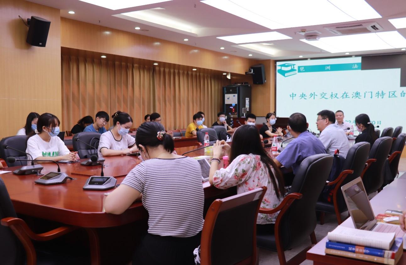 第三部分,澳门对外交往权的运行机制。叶桂平教授介绍了澳门对外交往权的内部运行机制和中央对澳门对外交往权的外部监督。叶桂平教授指出澳门对外交往权能够顺利运行离不开中央对特区政府对外交往权的规范、控制和监督。