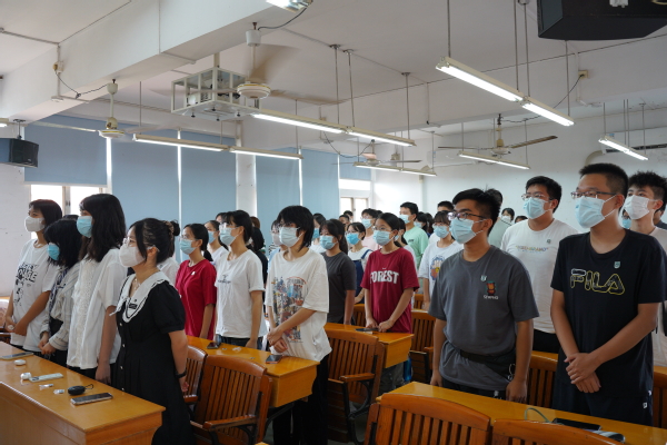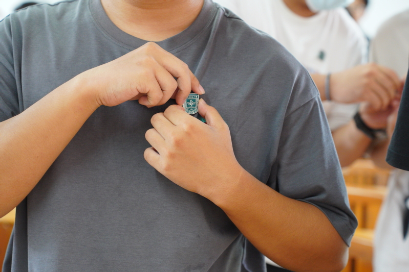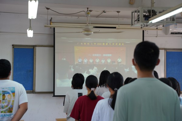 典礼伊始,全体起立,奏唱国歌。礼毕,校领导为新生代表佩戴校徽,象征同学们正式加入广财大家庭。