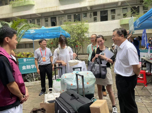 校党委书记郑贤操带领老师走访迎新点