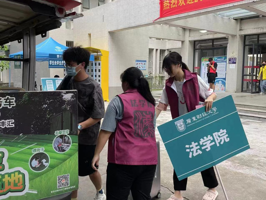 2022年8月30日上午,老师、学生干部、班助以及志愿者们便积极投入到了迎新工作之中,他们撷满高昂的热情,以最佳的精神面貌迎接22级中外法学新生。