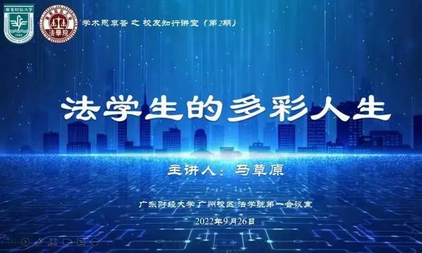 马草原分享了大学学习期间的体会。除了学习研究法学专业知识,他还非常注重丰富实践经验、锻炼综合素质能力,主持研究生迎新晚会、参加法律职业技能大赛、担任南粤大学生辩论赛主席、开展读书社团活动、创办个人独立网络论坛等。他指出,尝试外专业的辅修课程,更有利于拓宽知识体系、丰富人生阅历;坚持学习英语,提高法律英语的应用能力,具备能独立进行涉外法律活动的实践能力。