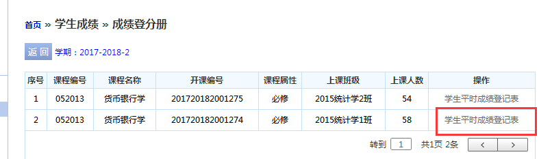 6、教师查看。任课教师登录系统,在教务成绩—成绩登分册—学生平时成绩登记表中查看学生办理情况。若有学生办理课程免听,其备注栏标注“免听”。