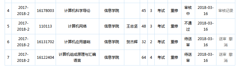 5、教务处审批。学生点击“送审”后,教务处方能看到学生申请数据,才能进行审核。