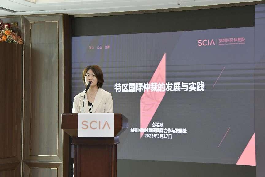 下午一行抵达深圳国际仲裁院,国际合作与发展处办案秘书彭岩冰为学员们就深圳国际仲裁院的基本情况、2022年高质量发展数据概览以及深圳国际仲裁院办案全流程进行介绍。深圳国际仲裁院又名华南国际经济贸易仲裁委员会、粤港澳大湾区国际仲裁中心,英文简称“SCIA”。该机构由广东省经济特区管理委员会和深圳市政府创设于1983年,是改革开放后国内设立的第一个仲裁机构,也是粤港澳大湾区第一家仲裁机构。学员们就仲裁院人员构成招聘情况、涉外仲裁与诉讼的联系、仲裁院收费标准等问题与副总法律顾问樊奇娟、国际合作与发展处办案秘书陈舟进行交流,樊奇娟总顾问、陈舟秘书一一进行解答。