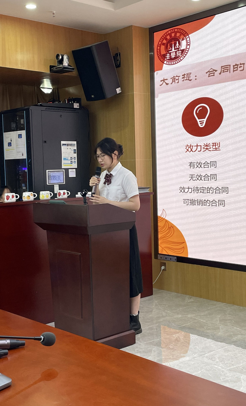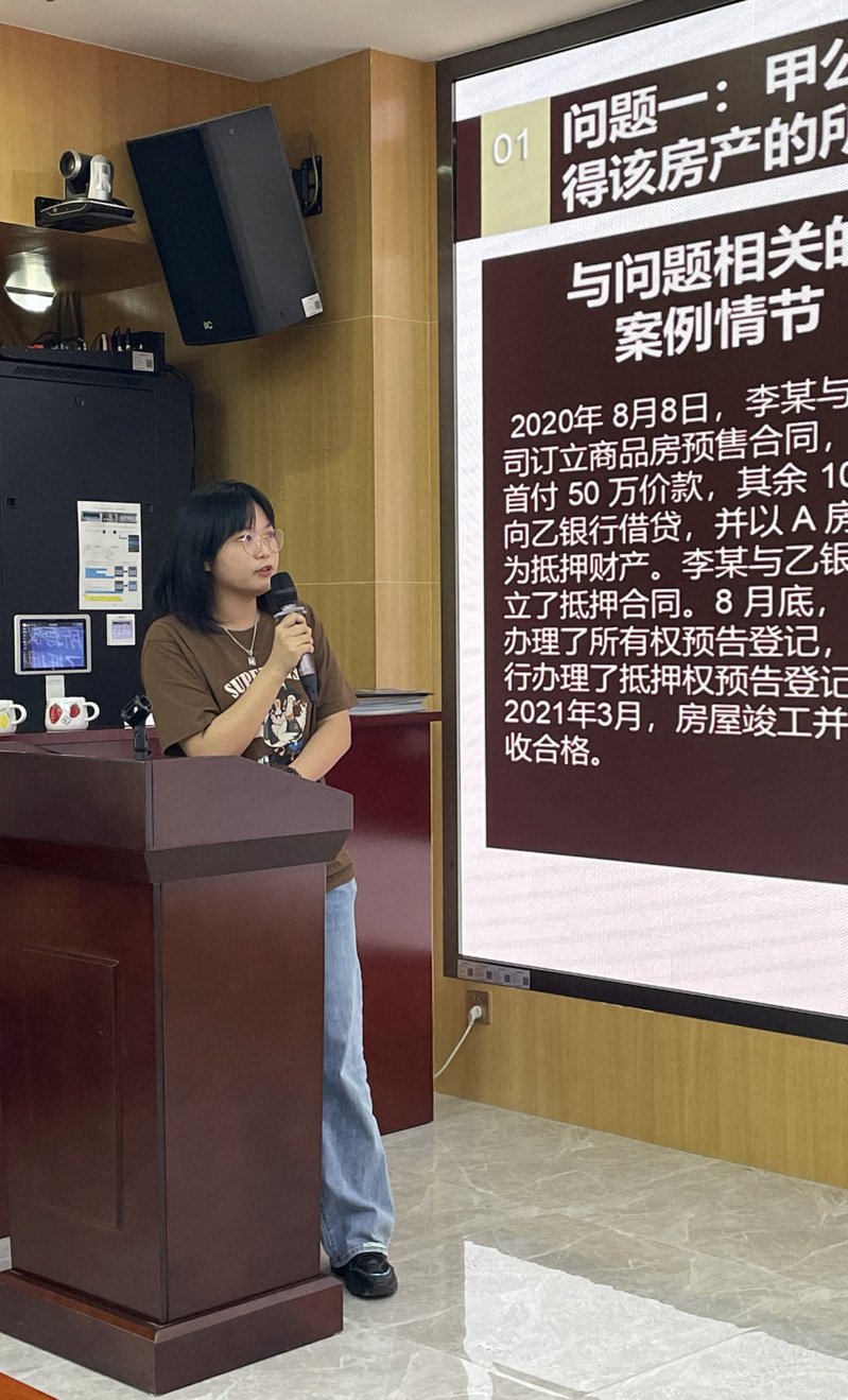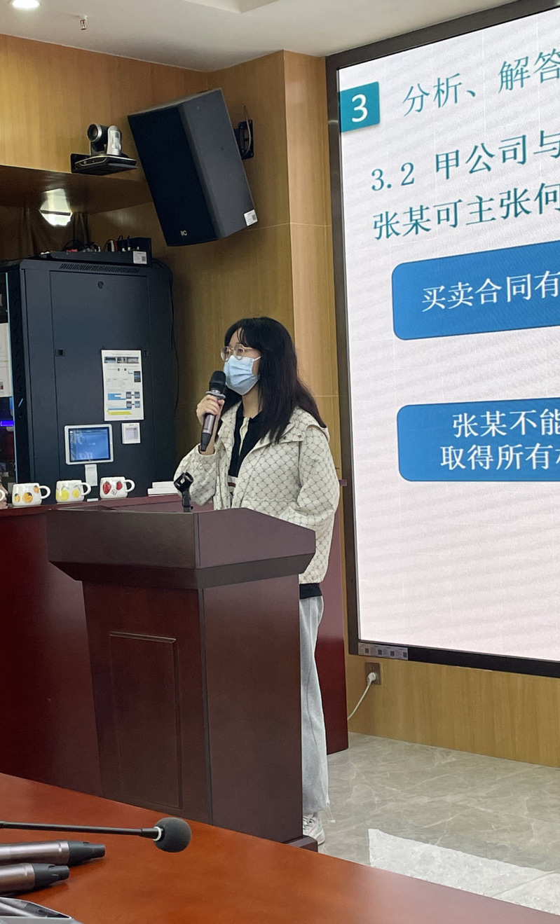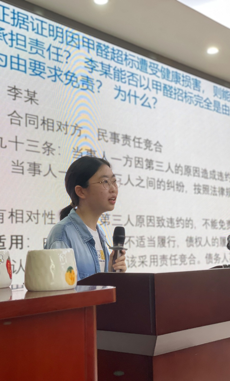 案例分析大赛以“明晰三尺之法律,通万事之仪表”为宗旨,分别设置民法、刑法两道题目供选手分析选择。在决赛现场,选手们用演讲汇报的方式侃侃而谈,分享对案例的分析思考和体会。